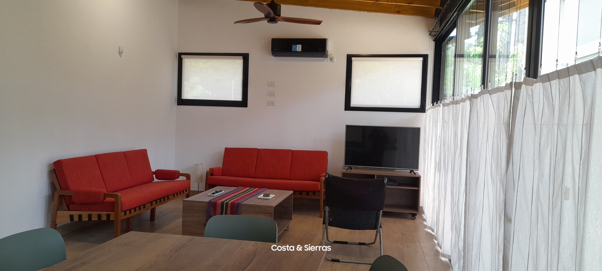 - Amplio estar comedor en concepto abierto con acogedor living con TV que se destaca por sus grandes ventanales que se abren, logrando una fluida integración con el exterior. 2 aires acondicionados, 2 ventiladores de techo.