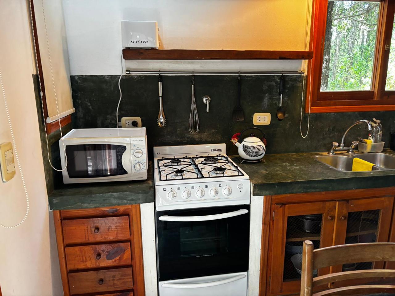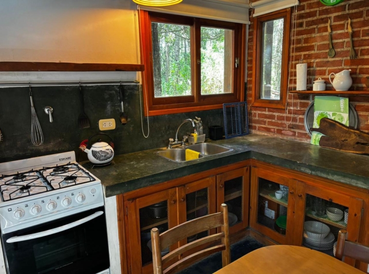 Planta baja: Living con hogar a leña, cocina comedor, baño completo. Dormitorio principal.