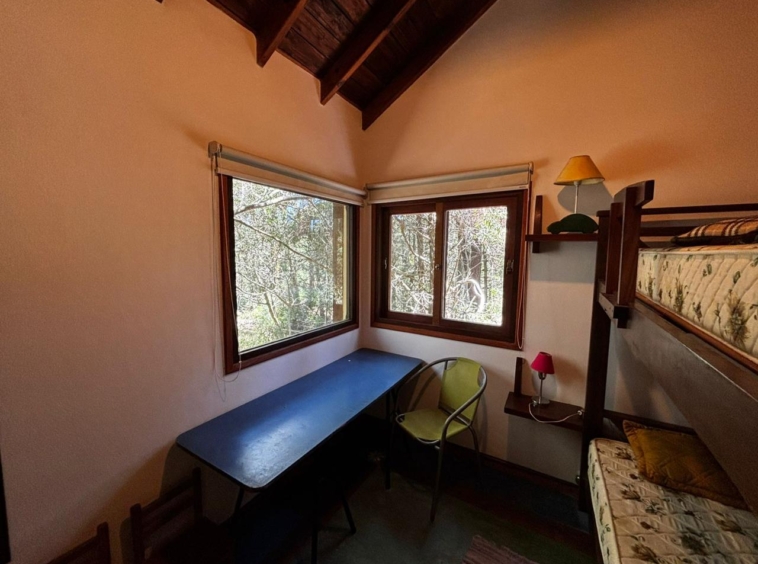 Planta alta: Dormitorio matrimonial, dormitorio individual con cama cucheta y cama individual. Baño completo.