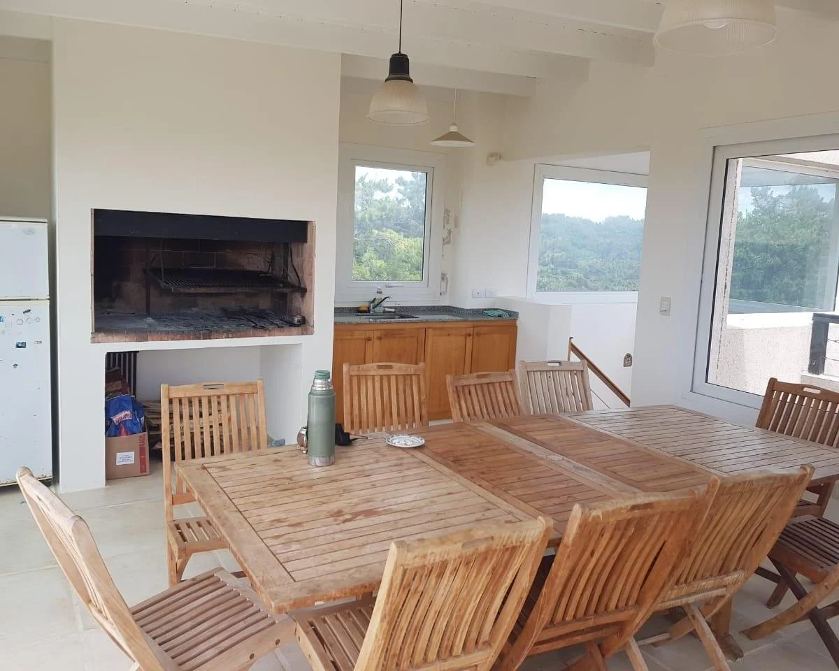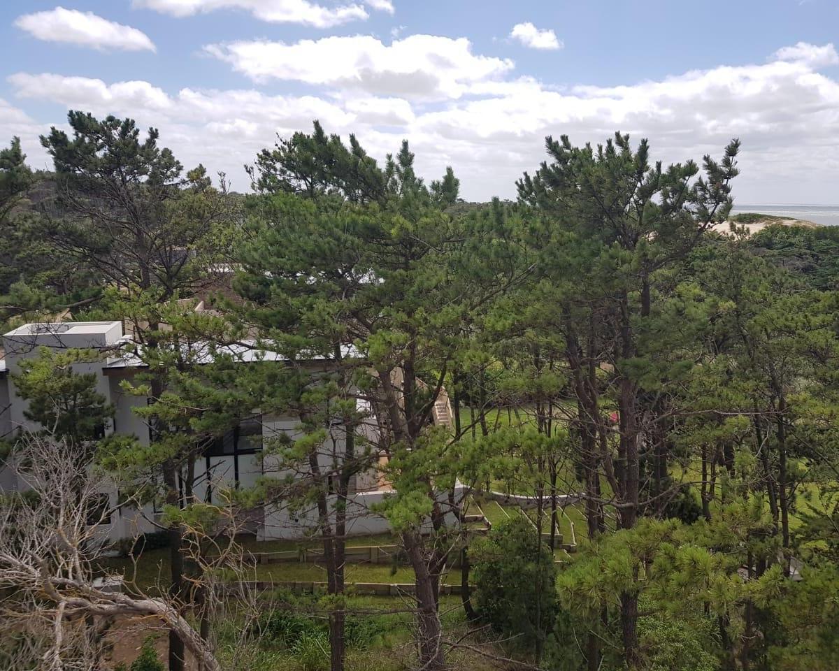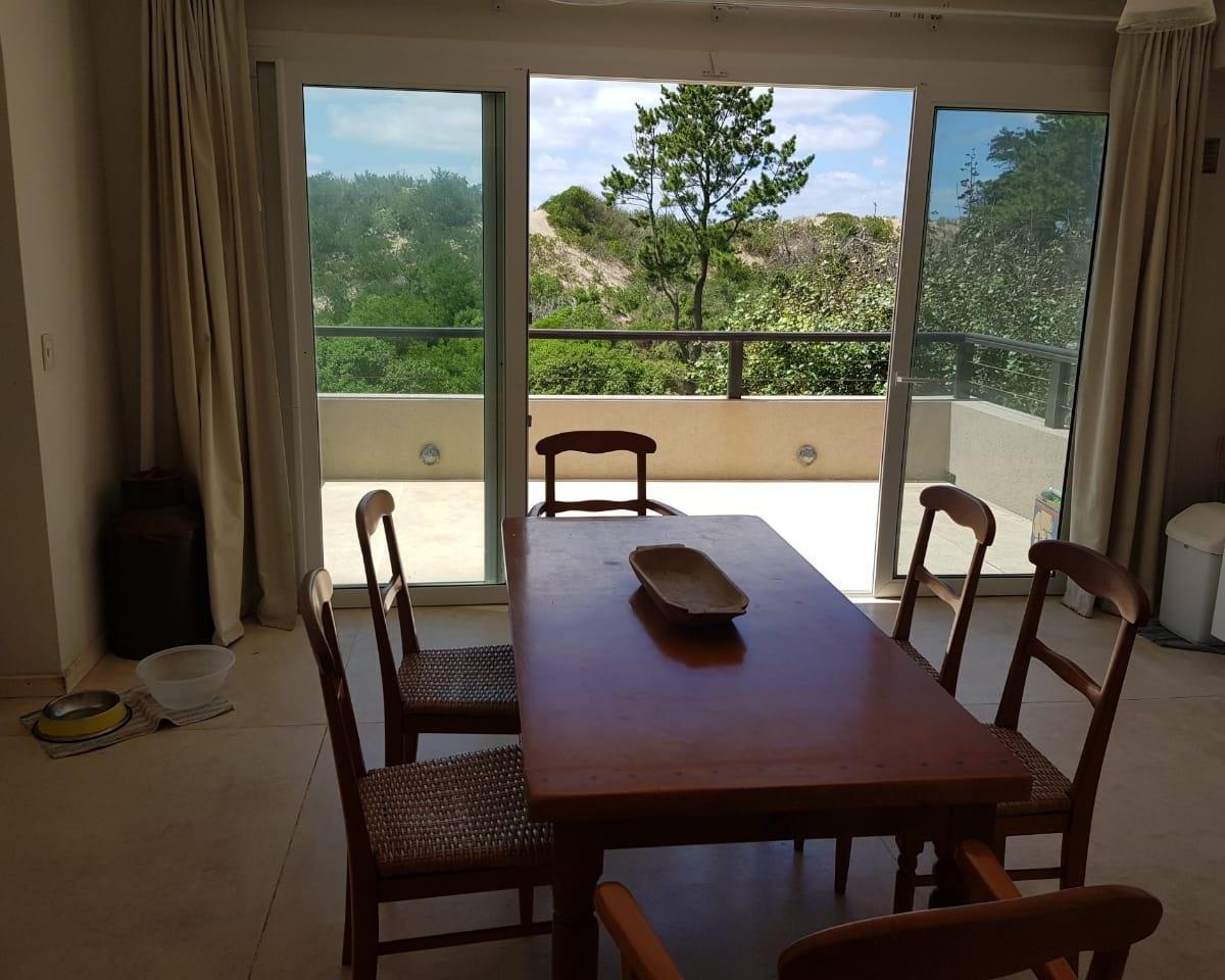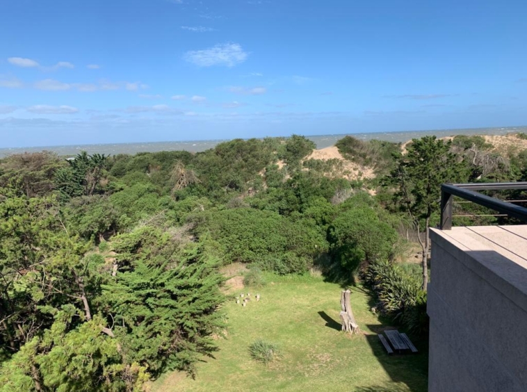 Al ingresar a la casa, serás recibido por una vista impresionante de las dunas a través de las puertas que conducen al balcón terraza. El diseño minimalista de la cocina, con su mobiliario adecuado y mesada de granito, se combina perfectamente con la calidez de la mesa de madera. En esta planta, encontrarás dos espacios de living y el comedor principal, todos con vistas espectaculares al mar y al bosque.