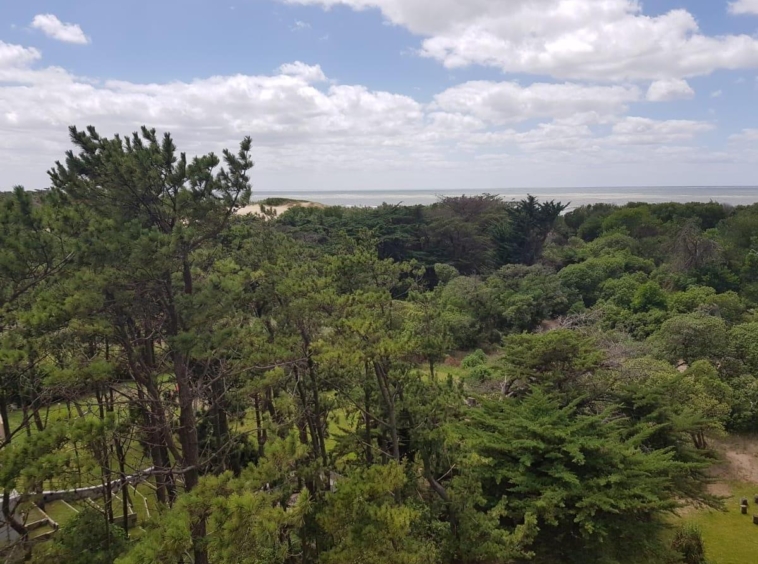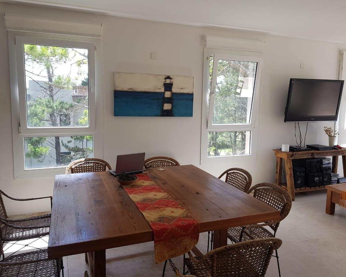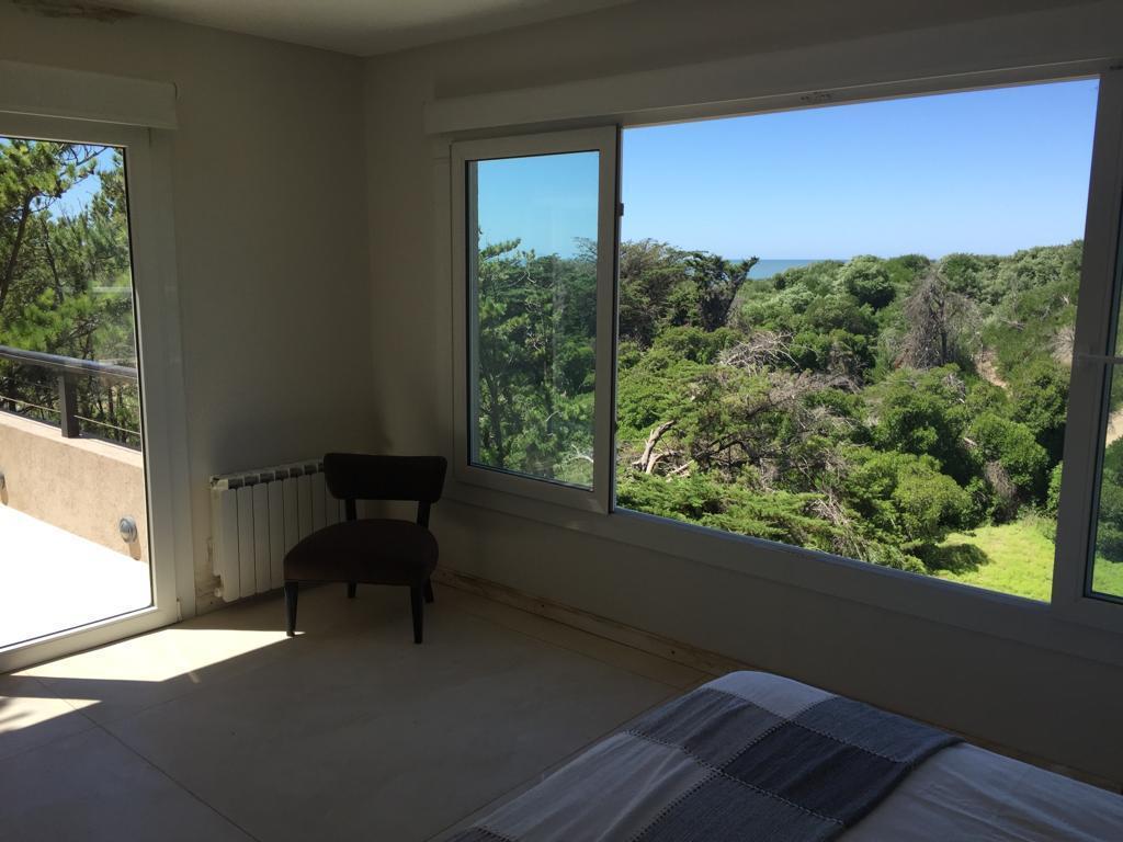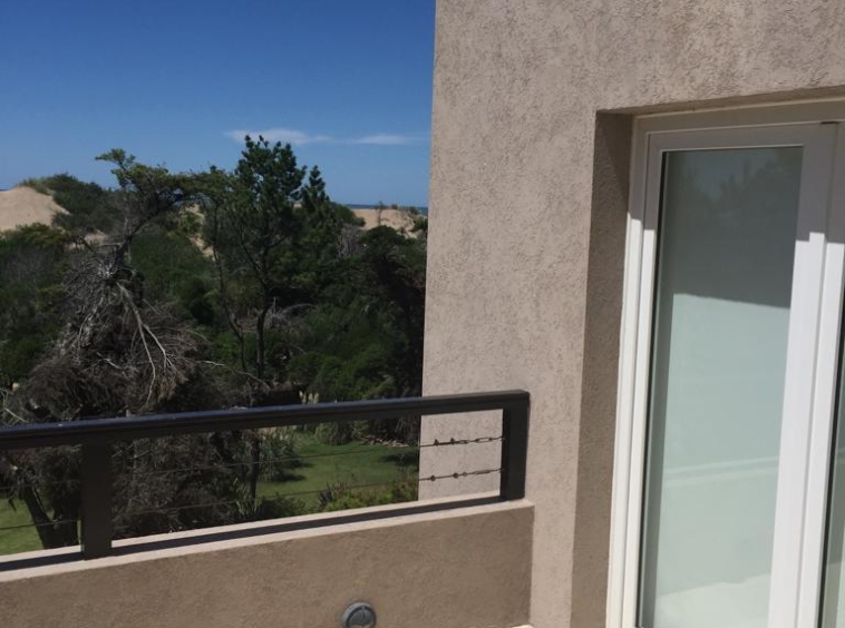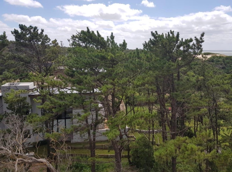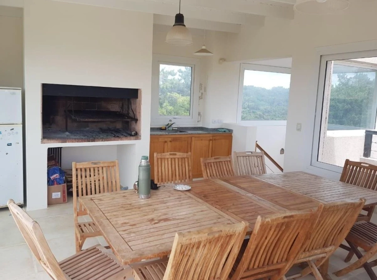 Al ingresar a la casa, serás recibido por una vista impresionante de las dunas a través de las puertas que conducen al balcón terraza. El diseño minimalista de la cocina, con su mobiliario adecuado y mesada de granito, se combina perfectamente con la calidez de la mesa de madera. En esta planta, encontrarás dos espacios de living y el comedor principal, todos con vistas espectaculares al mar y al bosque.