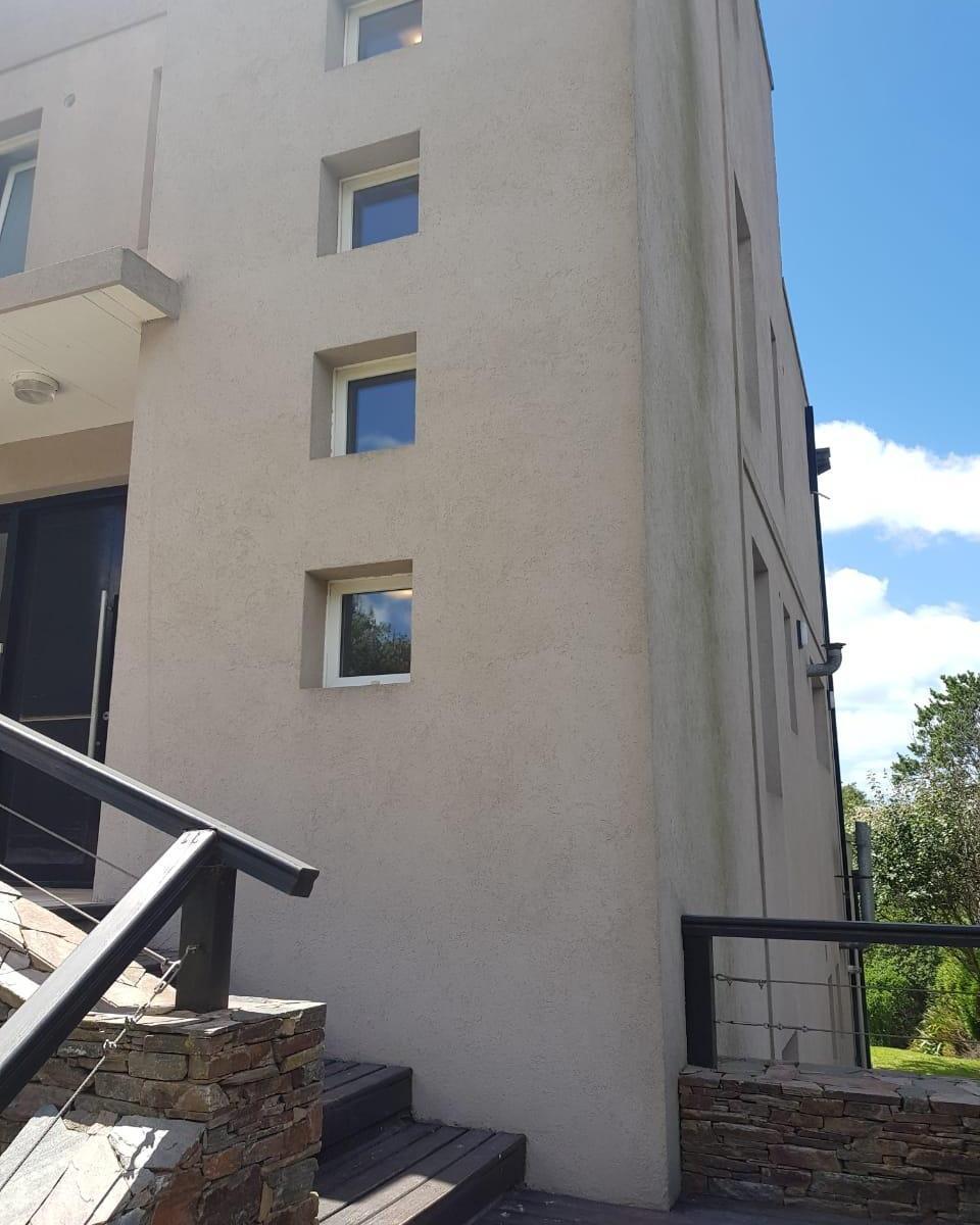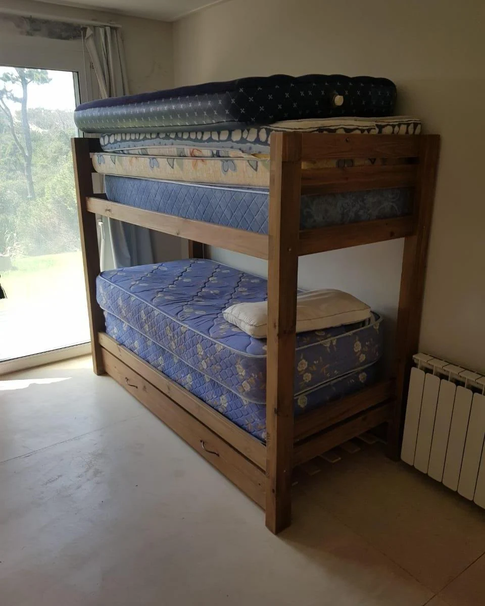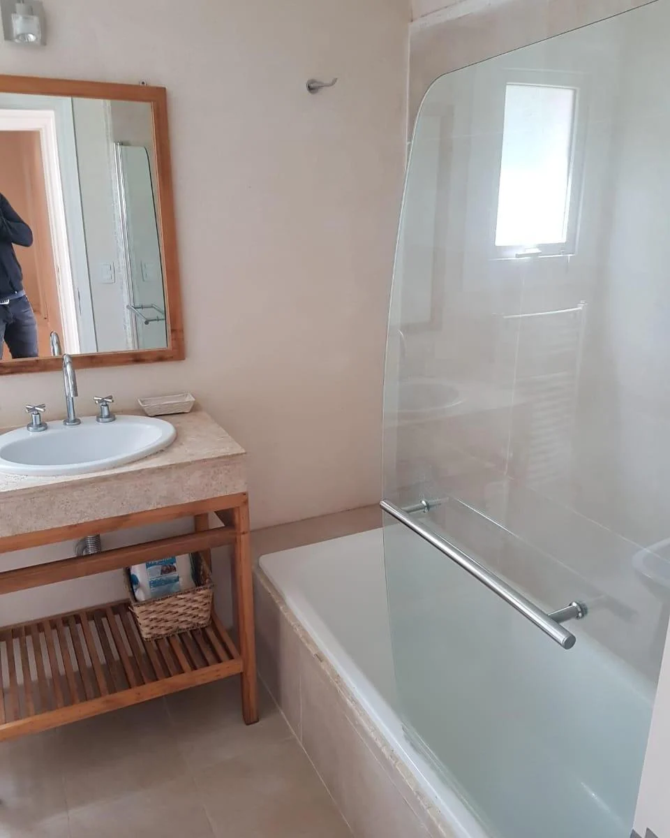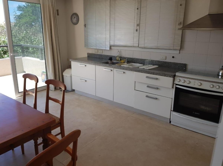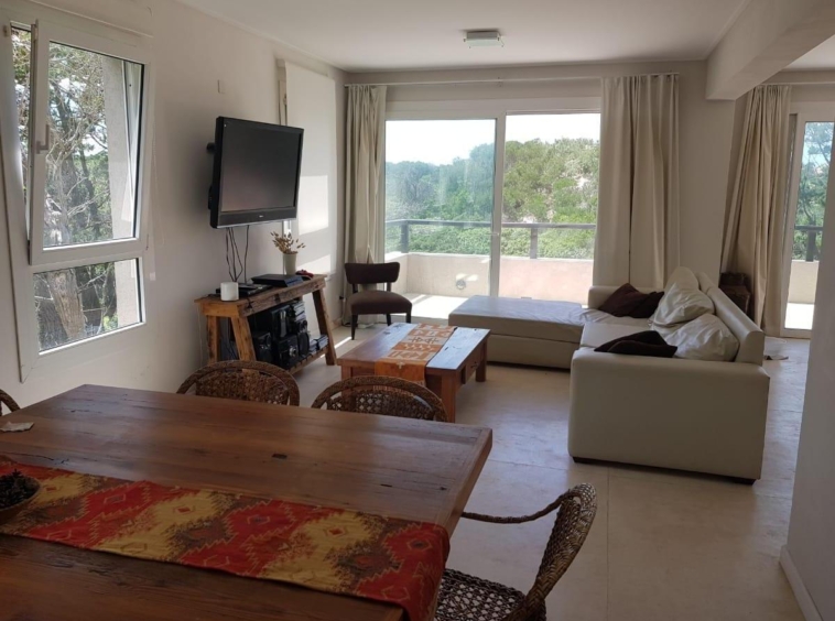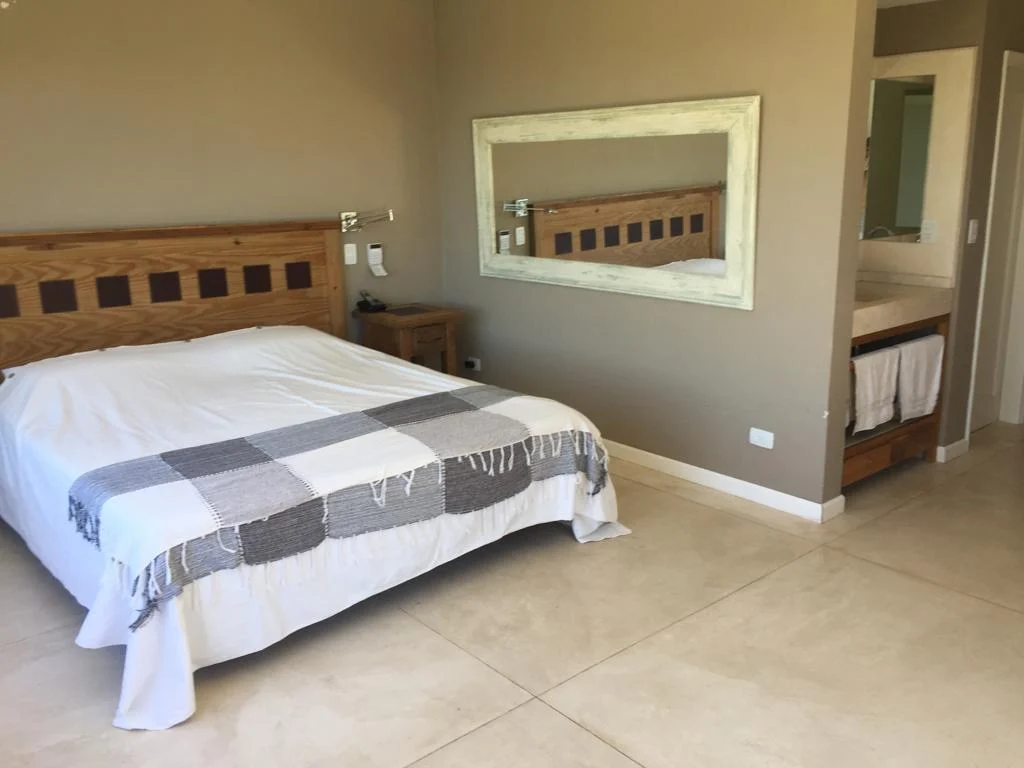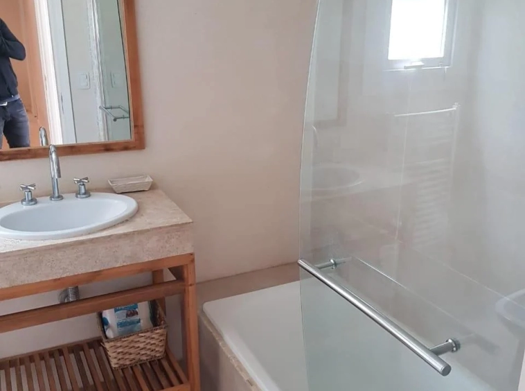 Los pisos de cemento alisado, las aberturas de doble vidrio en PVC y las paredes blancas crean un ambiente amplio y luminoso. En este nivel también encontrarás un toilette y un espacio de almacenamiento, así como un balcón terraza con vistas al parque y las dunas.
