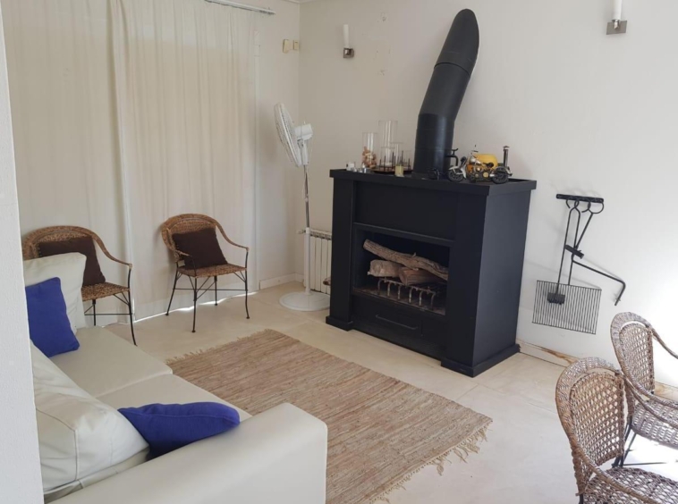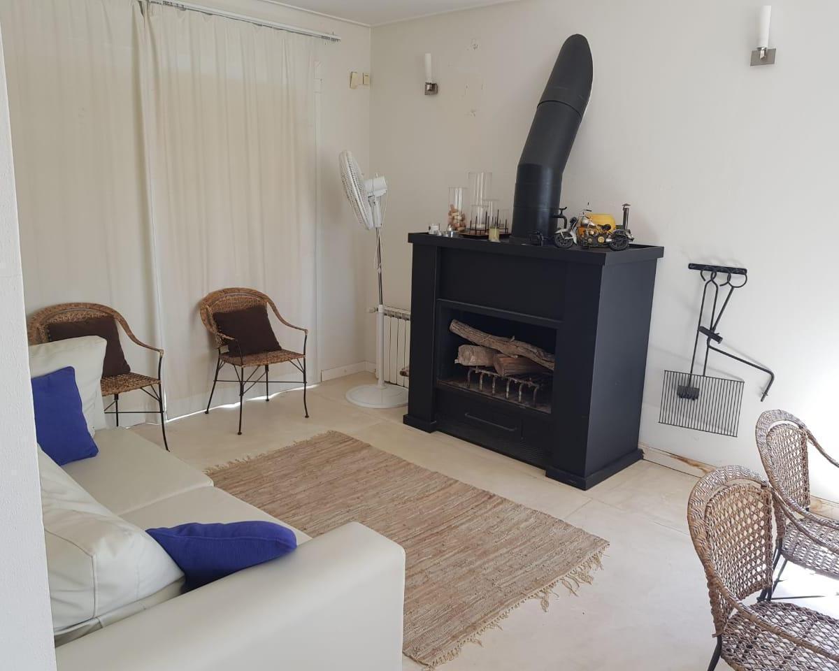 La casa cuenta con calefacción por radiadores con caldera, aberturas de PVC en todos los ambientes, piso de cemento alisado y terminaciones en carpintería de madera y piedra. Además, tiene un revestimiento de tarquini.