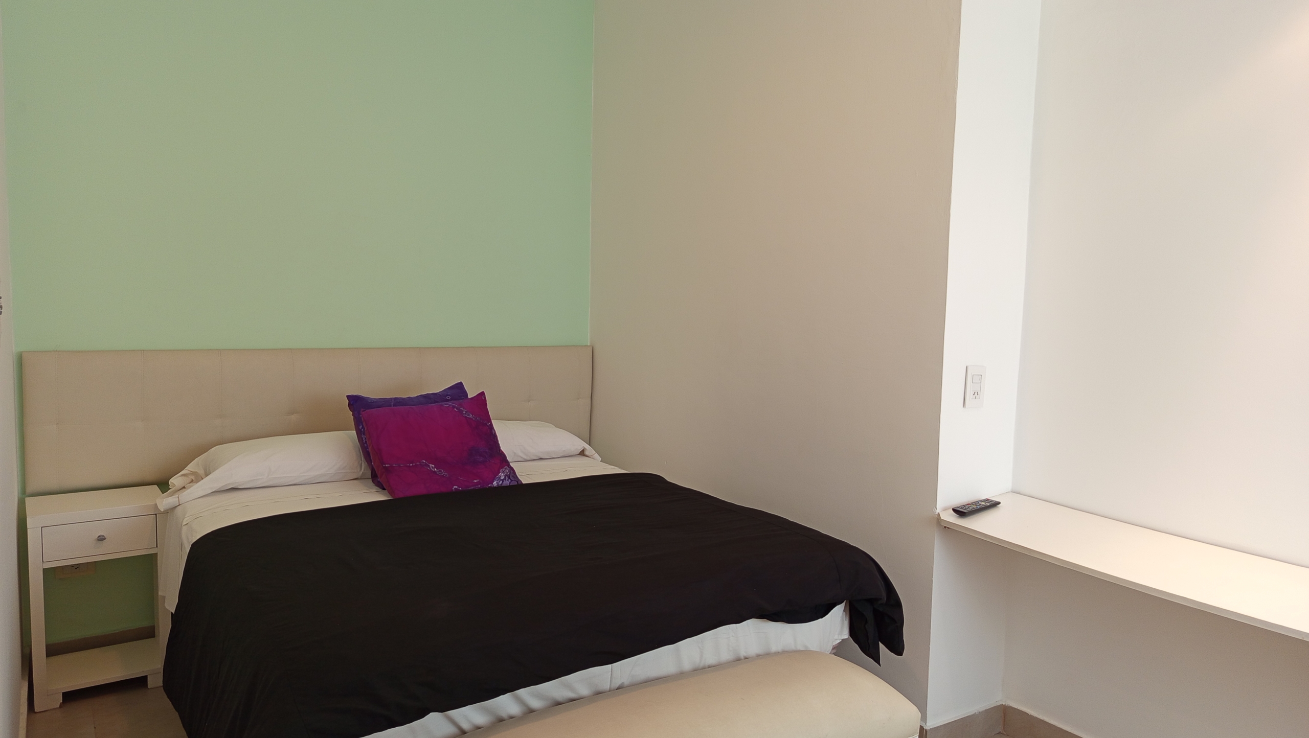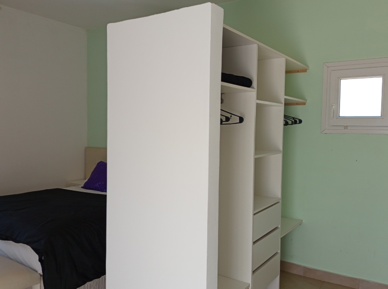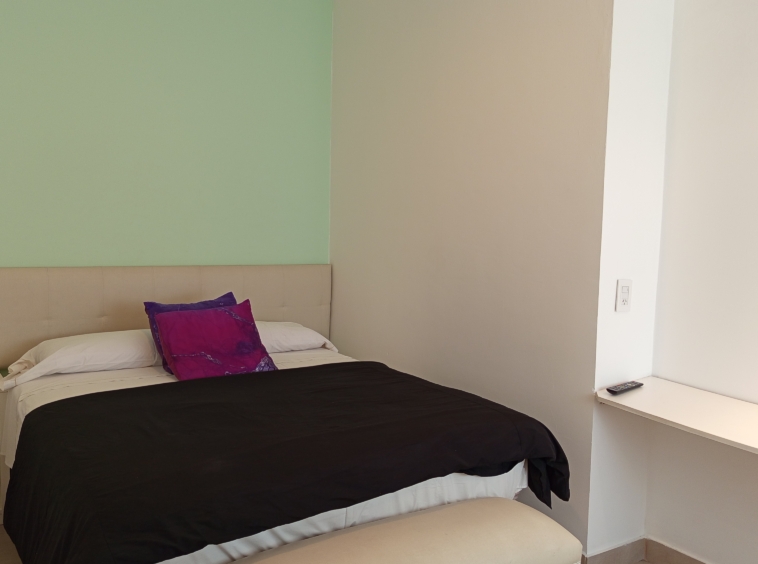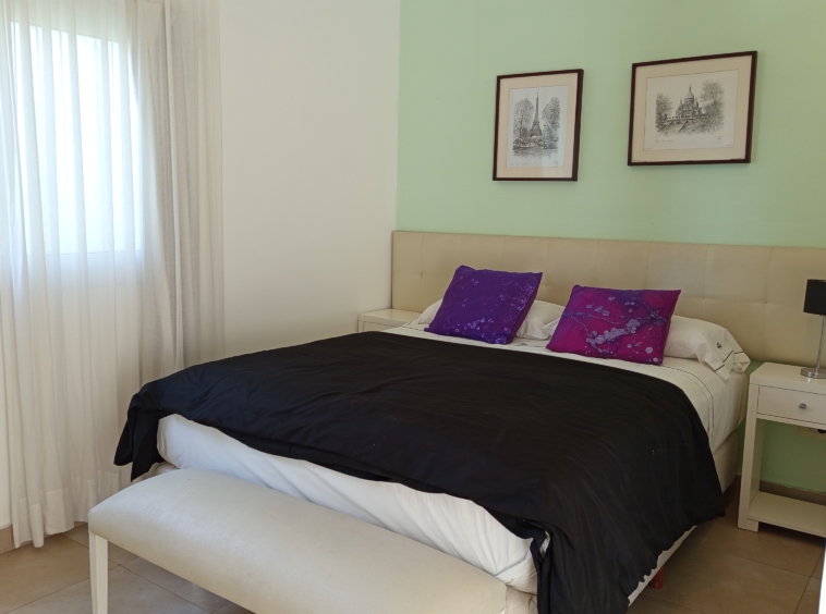 El nivel superior alberga el dormitorio principal, completo con una cama queen-size, baño en suite con hidromasaje. Desde aquí, se accede a un balcón privado con vistas a la piscina, creando un retiro tranquilo y privado.