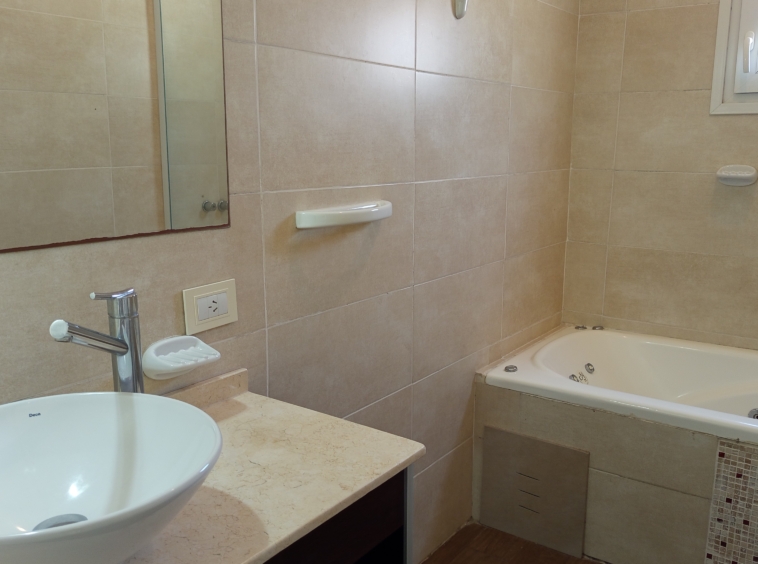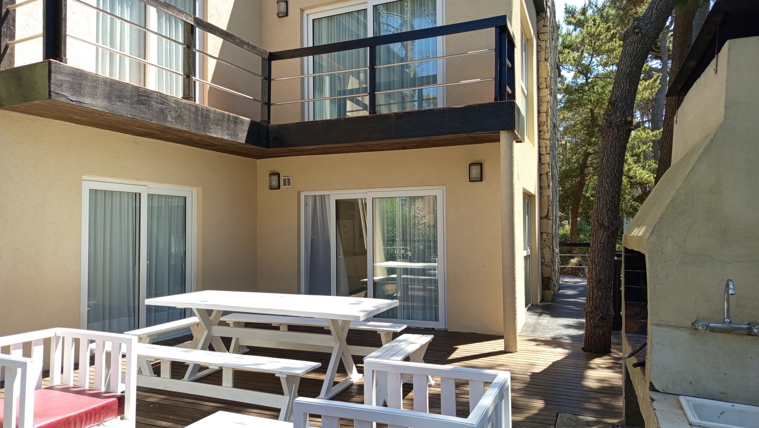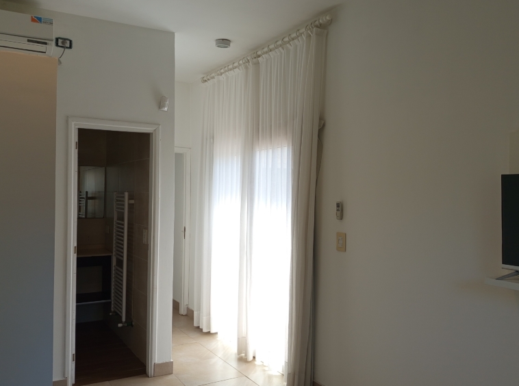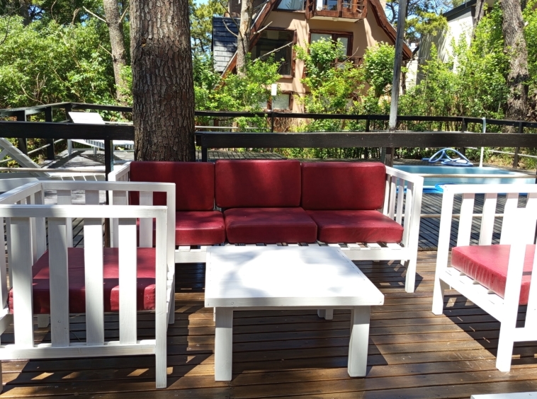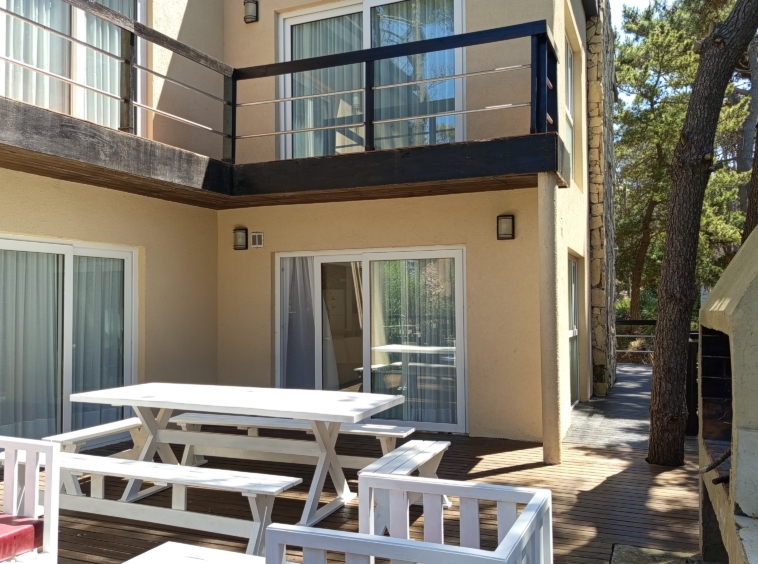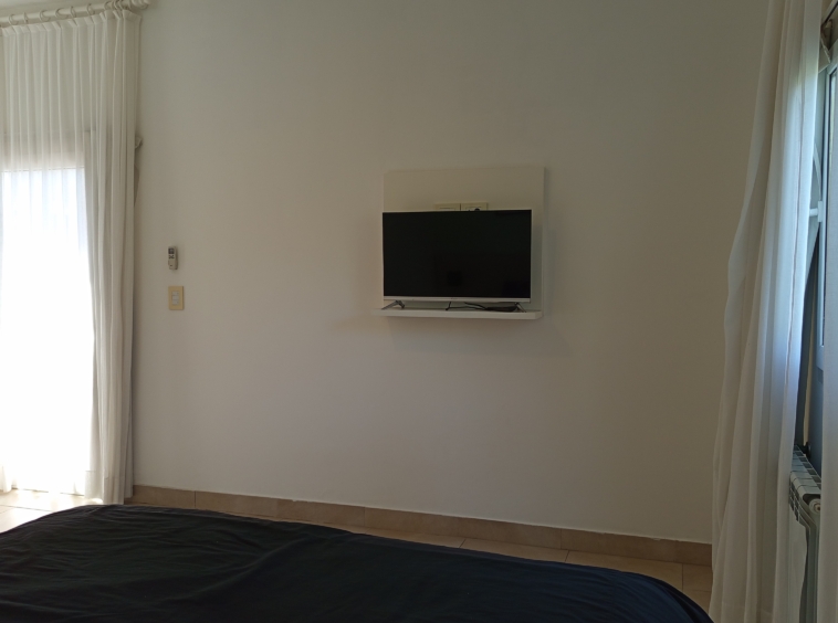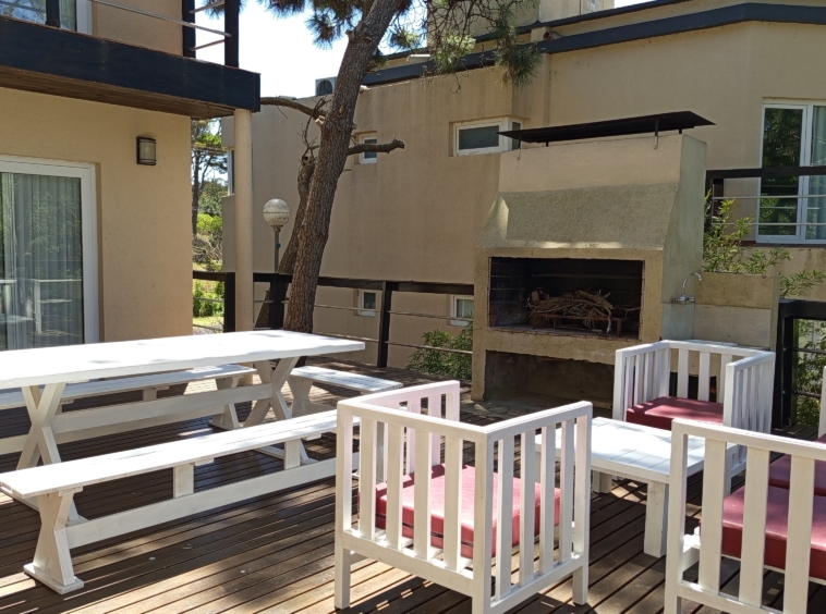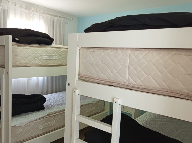 En el nivel principal, dos dormitorios con camas individuales ofrecen espacio para la comodidad de los huéspedes, mientras que un baño completo con bañera e hidromasaje brinda un oasis de relajación. Subiendo por las escaleras de cemento con detalles en hierro, nos encontramos con un luminoso estar que sirve como área de entretenimiento o sala de juegos, con acceso a un pequeño balcón.