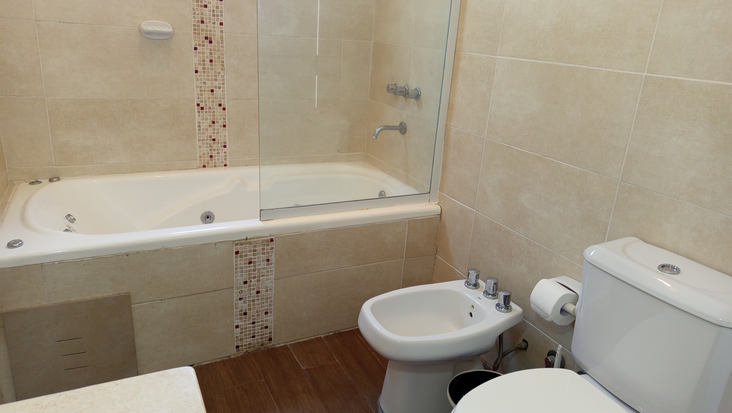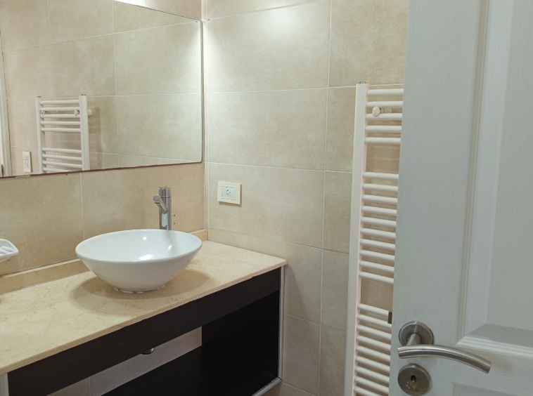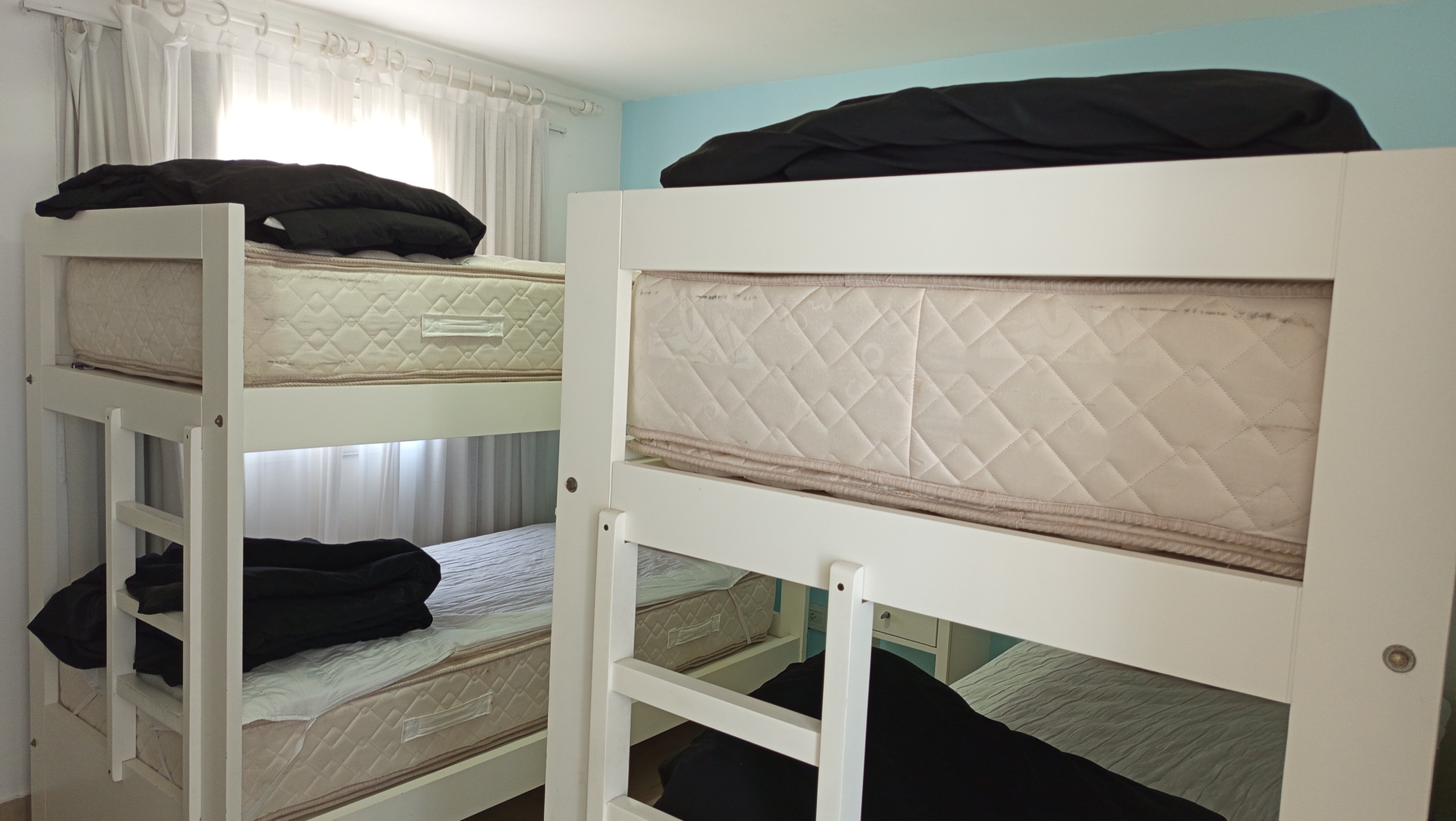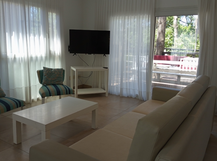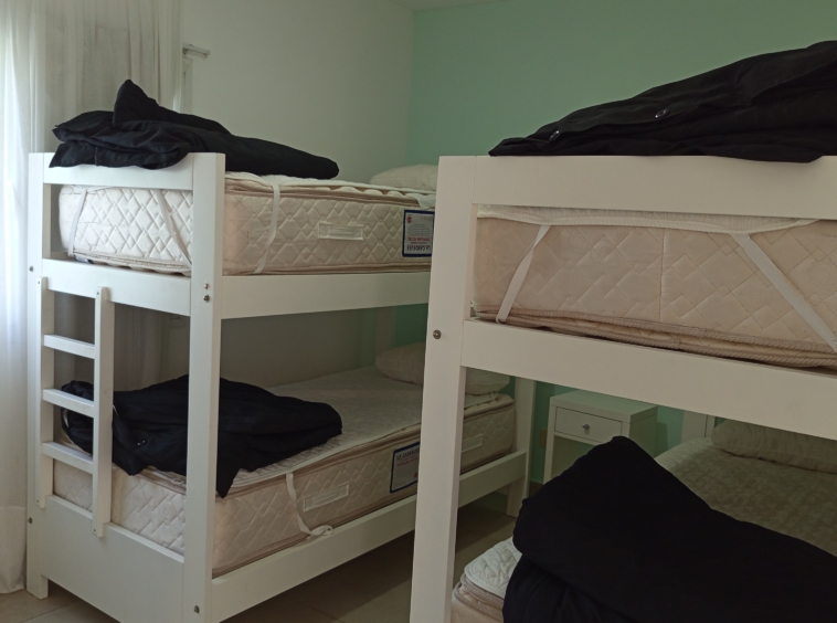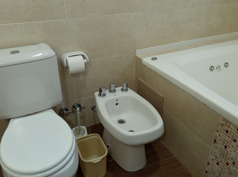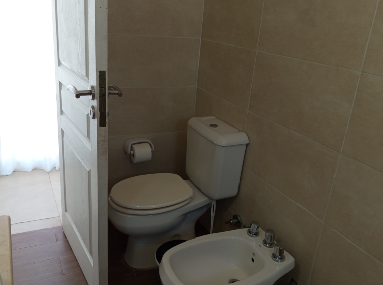 En el nivel principal, dos dormitorios con camas individuales ofrecen espacio para la comodidad de los huéspedes, mientras que un baño completo con bañera e hidromasaje brinda un oasis de relajación. Subiendo por las escaleras de cemento con detalles en hierro, nos encontramos con un luminoso estar que sirve como área de entretenimiento o sala de juegos, con acceso a un pequeño balcón.