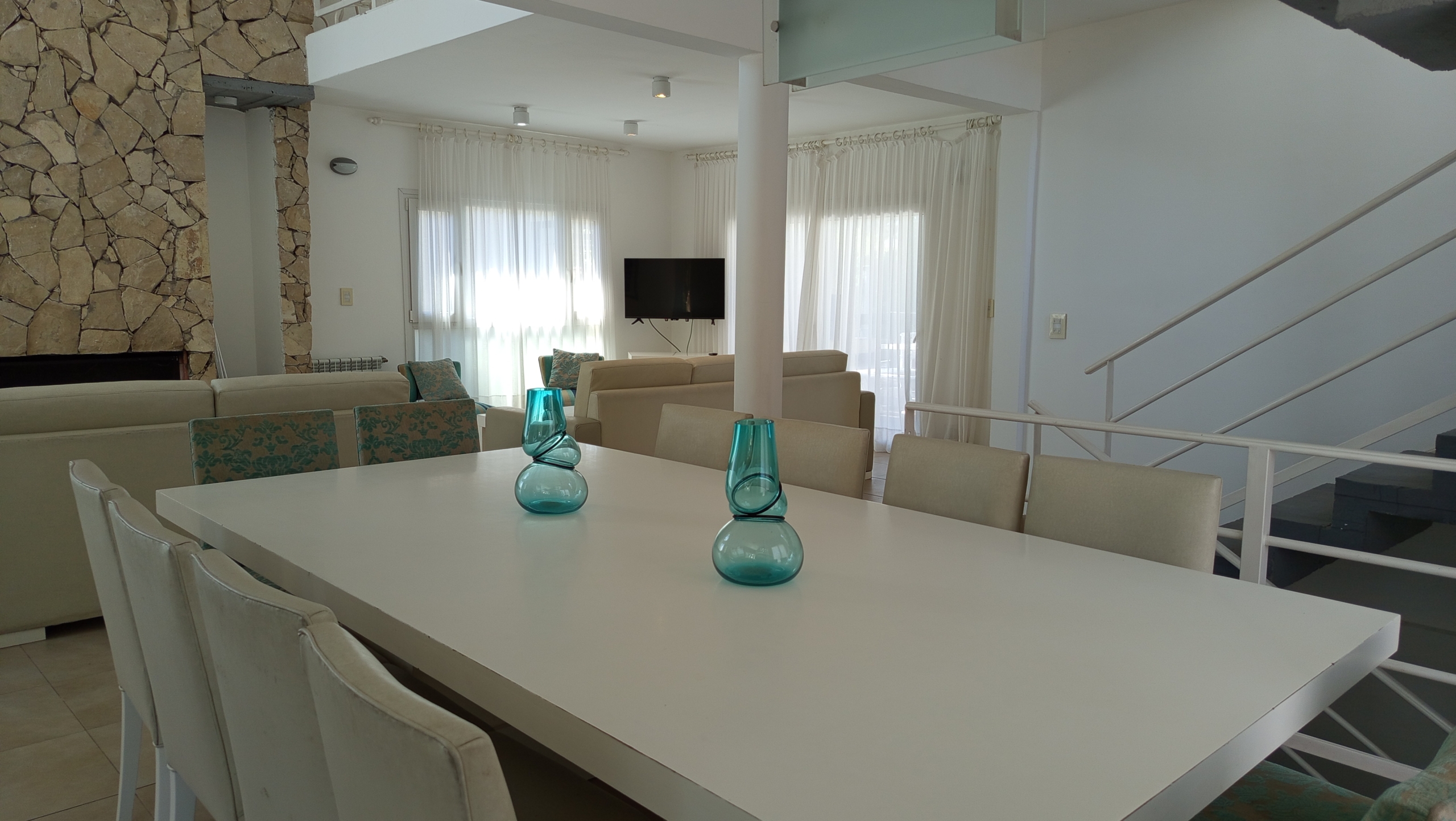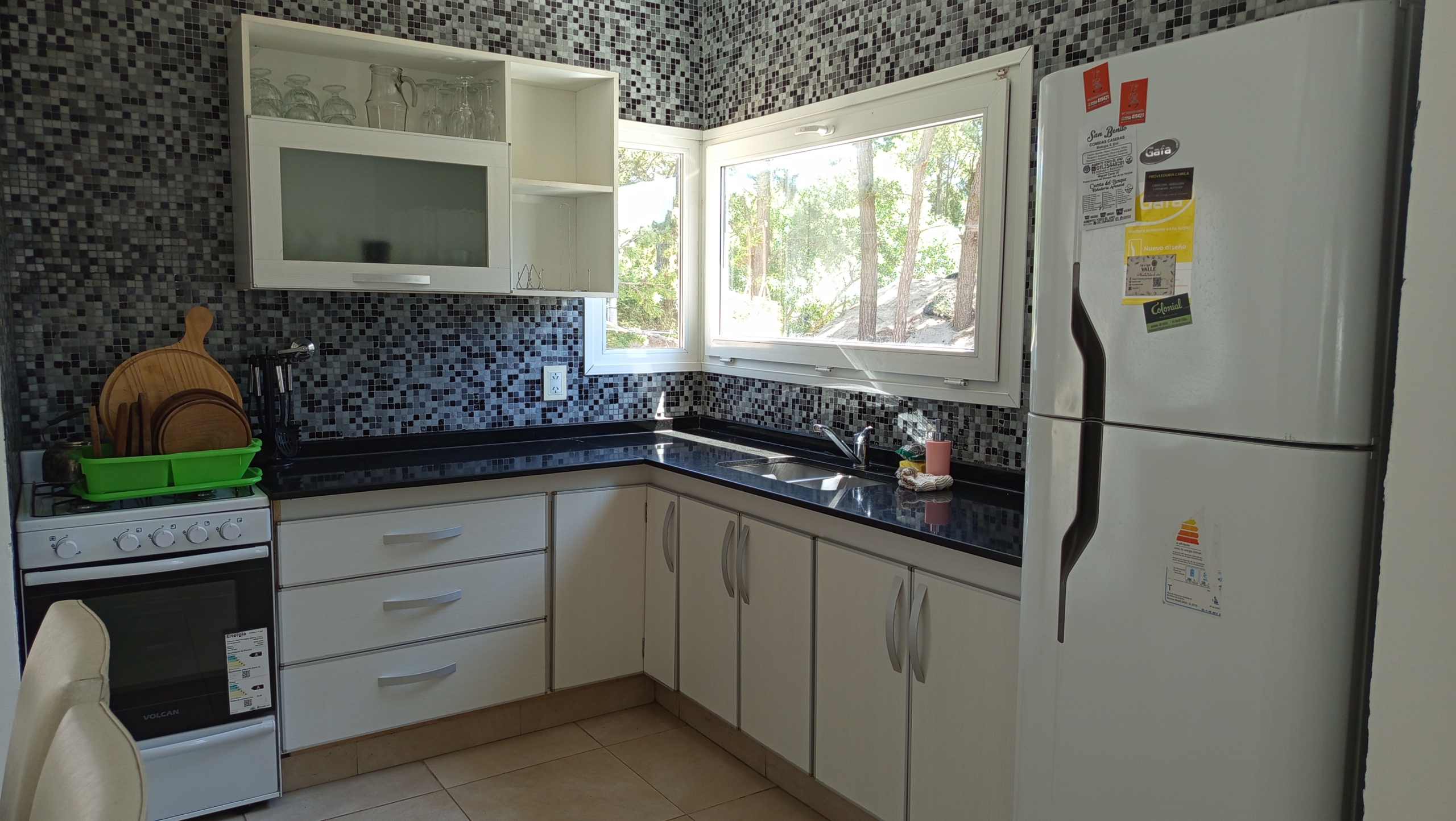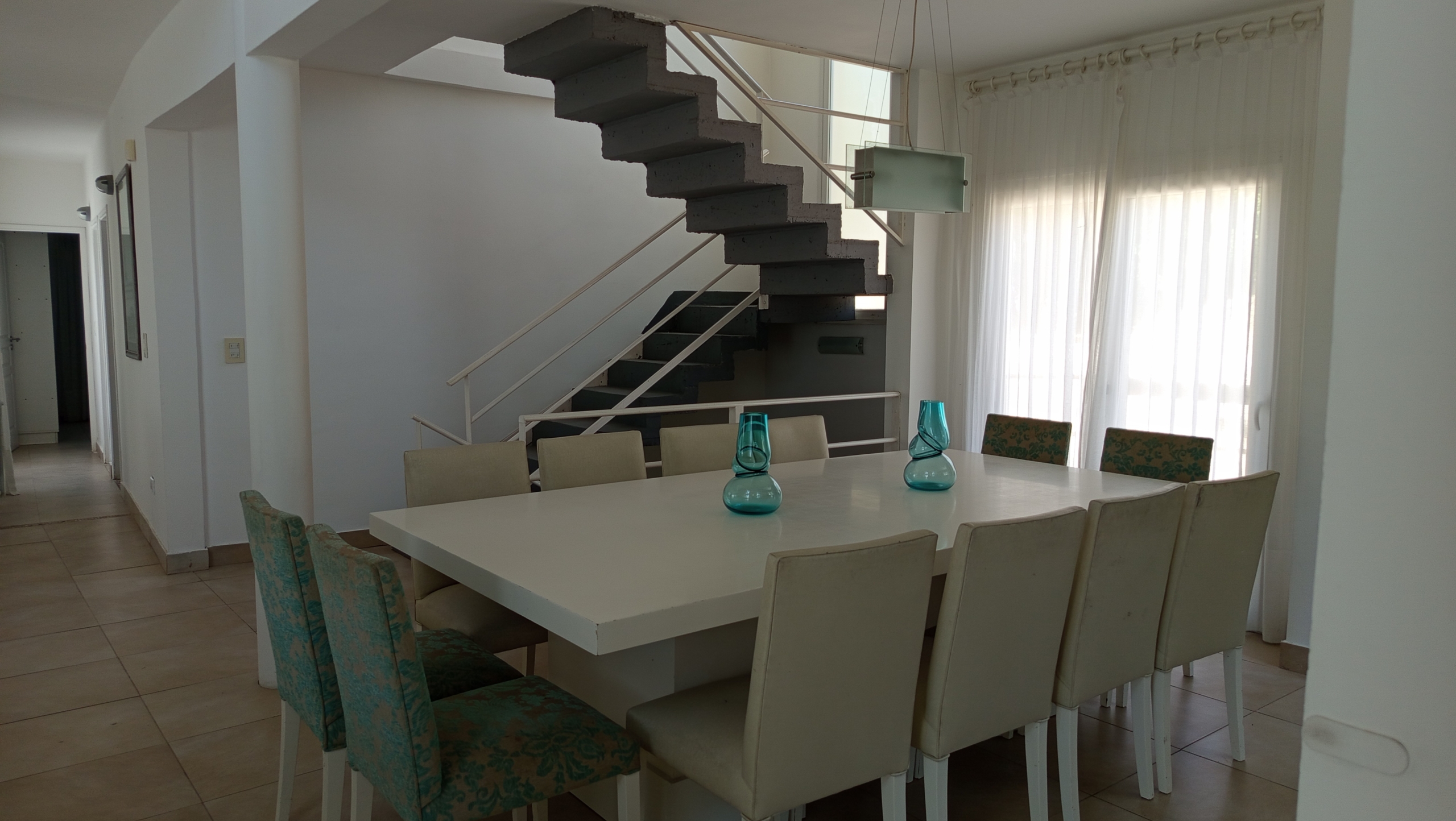 El diseño de concepto abierto de la casa permite una transición fluida entre los diferentes ambientes. La cocina, equipada con electrodomésticos de alta gama y una elegante mesada de granito negro, se integra armoniosamente con el amplio salón-comedor. Aquí, una mesa principal con capacidad para diez personas invita a disfrutar de deliciosas comidas en compañía de familiares y amigos.