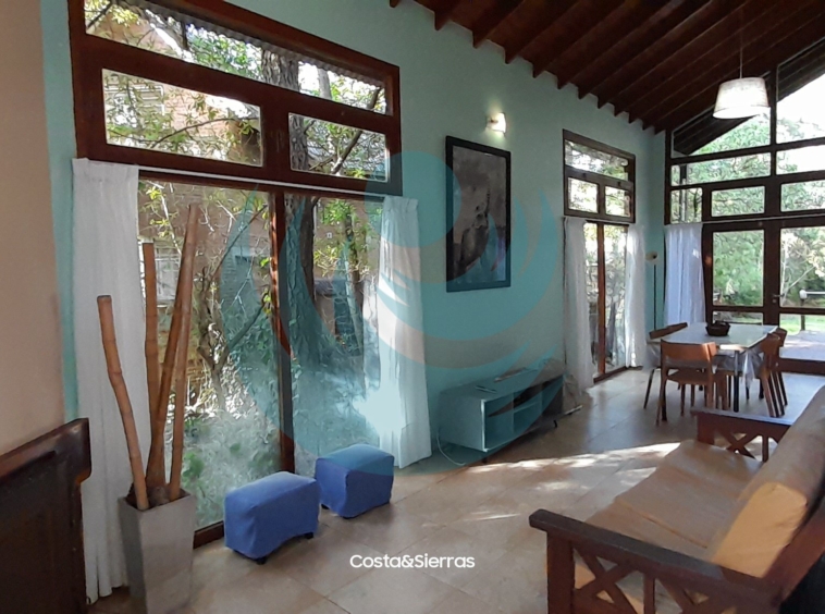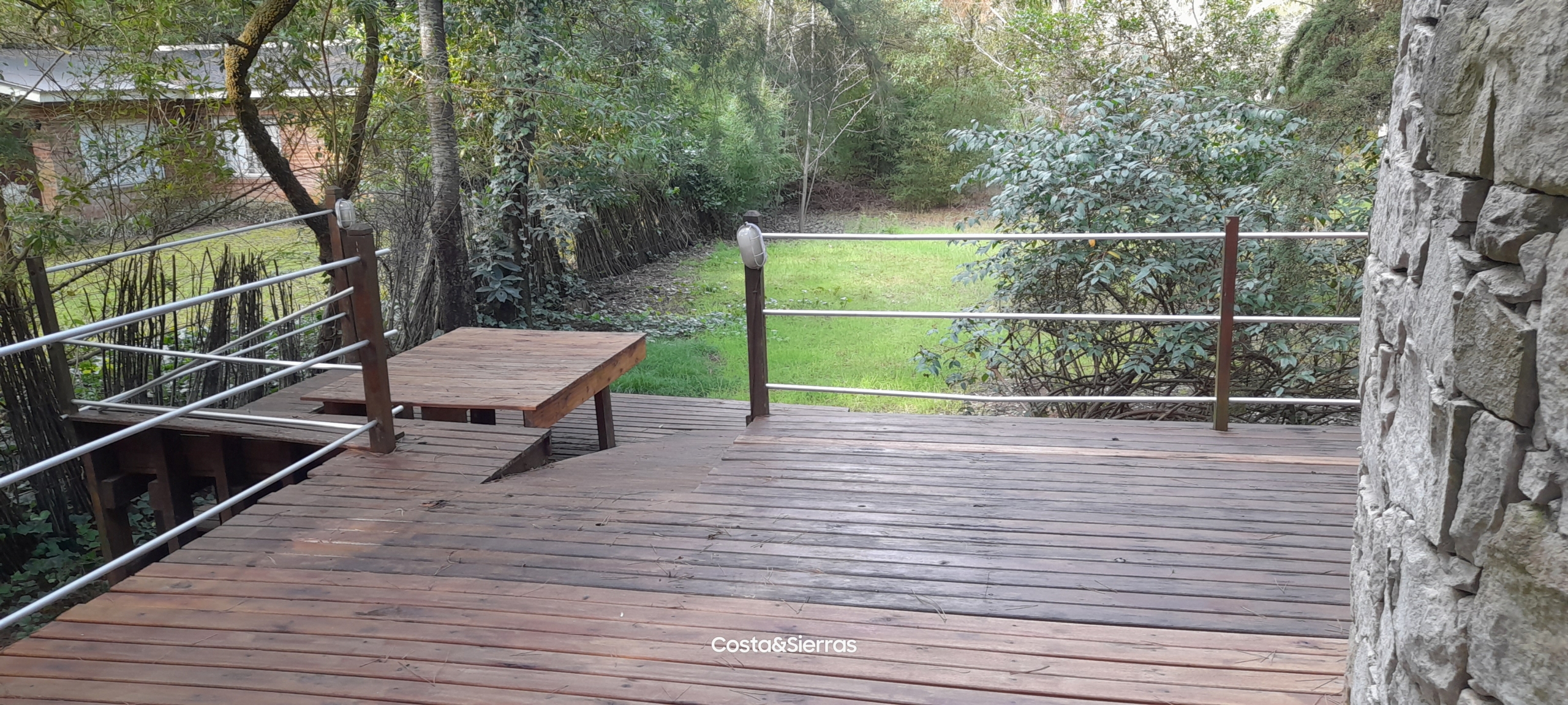 Encantadora casa en el bosque, a solo 300m del mar. Amplio lote con parque trasero, deck y parrilla.